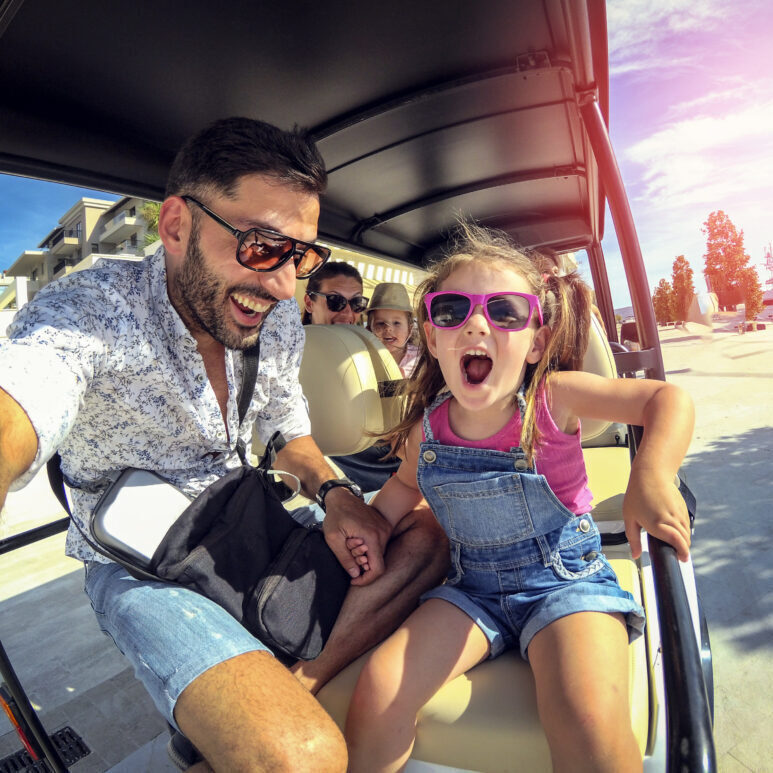 Your Space Coast Cart is equipped, registered, tagged, and insured for use on public roads. These great-looking carts liven up the Space Coast and bring a sense of community to the area. Our golf carts add flare and excitement to family outings, parades, and events. Reserve your golf cart rental today.